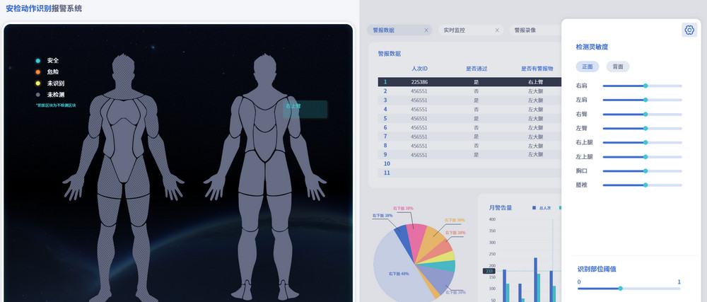 將安檢動作識別報(bào)警系統(tǒng)與安檢員管理系統(tǒng)數(shù)據(jù)打通,實(shí)現(xiàn)作業(yè)全流程電子化、信息化,安檢員工作監(jiān)督考核數(shù)據(jù)化,方便管理員及時進(jìn)行安檢員作業(yè)上崗管理、漏檢漏查追溯、處置作業(yè)考核